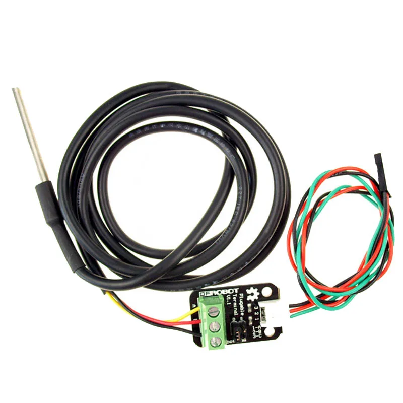 Π ΡΡΠΎΠΌ ΡΡΠΎΠΊΠ΅ Ρ ΠΈΡΠΏΠΎΠ»ΡΠ·ΡΡ Π²ΠΎΠ΄ΠΎΠ½Π΅ΠΏΡΠΎΠ½ΠΈΡΠ°Π΅ΠΌΡΡ Π²Π΅ΡΡΠΈΡ DS18B20, ΠΏΠΎΡΡΠΎΠΌΡ ΠΎΠ½Π° Π²ΡΠ³Π»ΡΠ΄ΠΈΡ ΠΊΠ°ΠΊ Π΄Π»ΠΈΠ½Π½ΡΠΉ ΡΠΎΠ»ΡΡΡΠΉ ΠΏΡΠΎΠ²ΠΎΠ΄ Ρ ΡΡΠ΅ΠΌΡ ΠΏΡΠΎΠ²ΠΎΠ΄Π°ΠΌΠΈ, ΡΠΎΡΡΠ°ΡΠΈΠΌΠΈ Ρ ΠΎΠ΄Π½ΠΎΠ³ΠΎ ΠΊΠΎΠ½ΡΠ°. ΠΡΠ»ΠΈ Π²Ρ ΠΏΠΎΠ»ΡΡΠ°Π΅ΡΠ΅ ΡΡΡΡΠΎΠΉΡΡΠ²ΠΎ Π±Π΅Π· ΠΊΠ°ΠΊΠΈΡ -Π»ΠΈΠ±ΠΎ Π΄ΠΎΠΏΠΎΠ»Π½Π΅Π½ΠΈΠΉ, ΠΎΠ½ΠΎ ΠΏΡΠΎΡΡΠΎ Π²ΡΠ³Π»ΡΠ΄ΠΈΡ ΠΊΠ°ΠΊ ΠΎΠ±ΡΡΠ½ΡΠΉ ΡΡΠ°Π½Π·ΠΈΡΡΠΎΡ.
