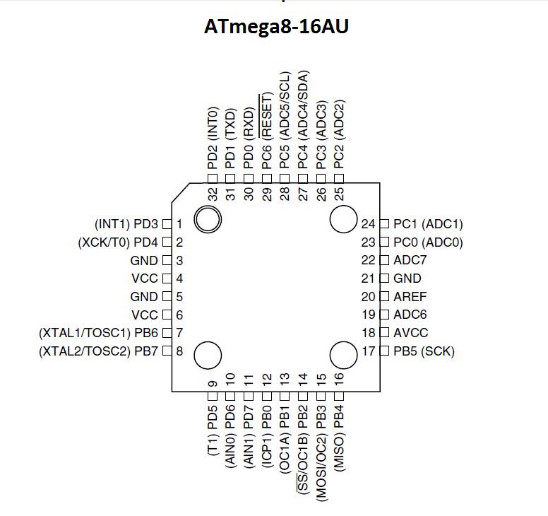 ATmega8 Схема конфигурации контактов