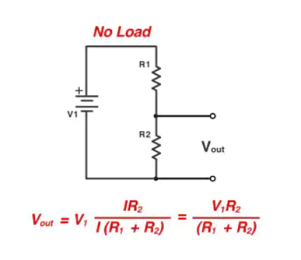 Формула Напряжение Делитель Цепь получена из приведенной выше принципиальной схемы. Входное напряжение обозначается как Vin , Резистор, подключенный к положительному потенциалу, Ra , Резистор, соединенный с землей, обозначается как Rb соответственно. Таким образом, уравнение для нахождения Vout (напряжение на выходе резистивного делителя) выглядит следующим образом:
