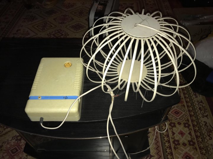 Классический прибор имеет форму люстры и довольно крупные габариты (диаметр обода — 1 метр). Такое устройство подойдет не для каждой квартиры.