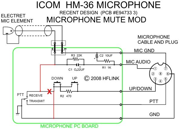Аккуратно разбираем разъём для подключения к трансиверу и делаем распайку кабеля согласно штатного микрофона, последовательно к штырьку под номером 1 сигнального микрофонного провода припаиваем малогабаритное сопротивление номиналом в пределах — ом. Это сопротивление снимает с кабеля наводящий ВЧ сигнал.