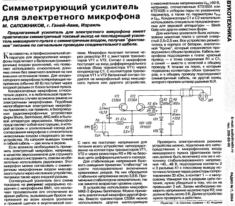 Обсудить статью ЭЛЕКТРЕТНЫЙ МИКРОФОННЫЙ УСИЛИТЕЛЬ