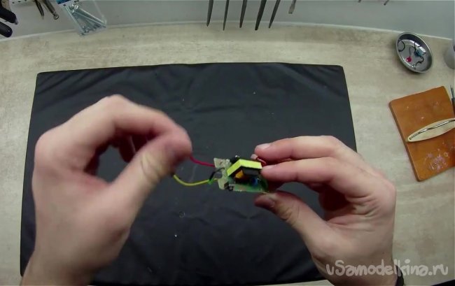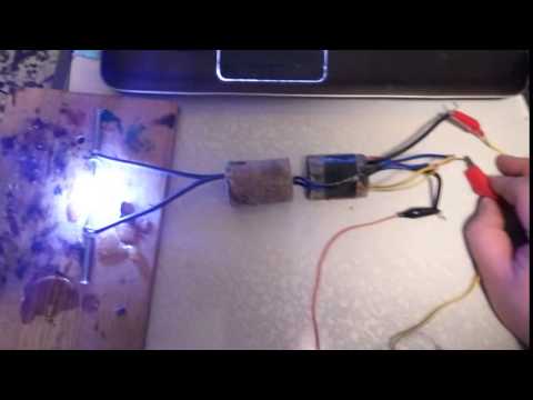 - Намотать вторичную обмотку тонким проводом 0.1 мм (3000-5000 витков)