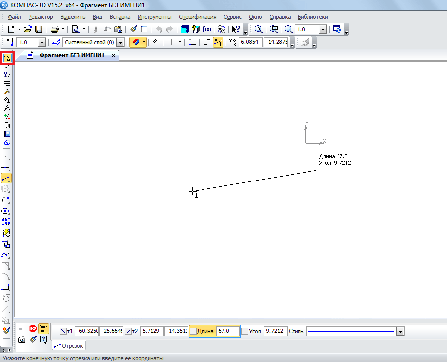 Построение отрезка в КОМПАС
