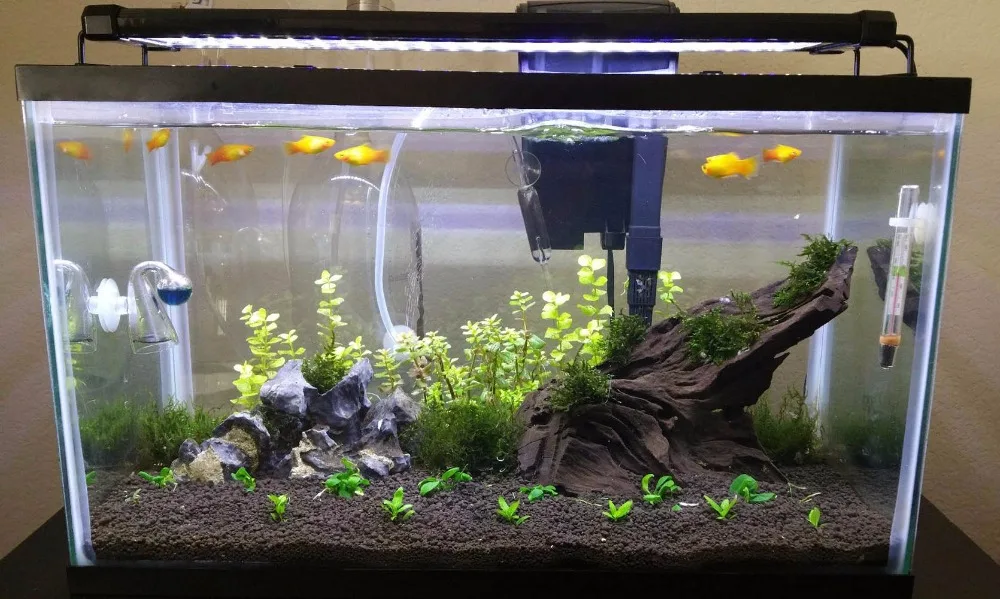 - Постепенно увеличивать яркость при запуске нового аквариума.
