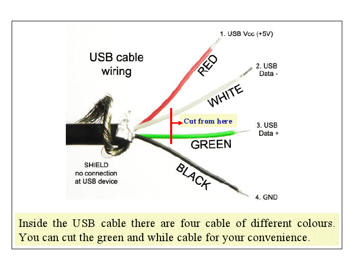 В некоторых USB кабелях может использоваться нестандартная цветовая маркировка проводов. В этом случае определить нужные контакты можно следующими способами: