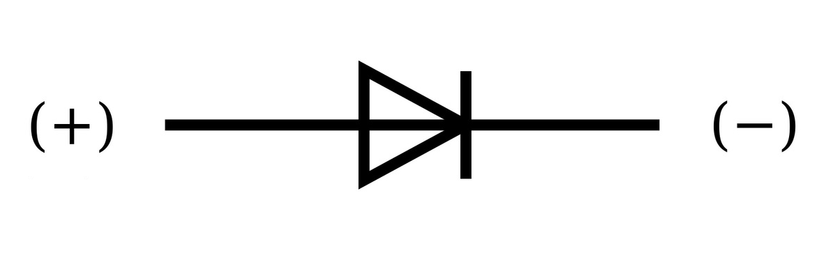 Таким образом, ток через диод может протекать только от треугольника к черте, то есть слева направо на схеме.