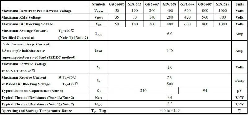 KBU603G — это мостовые выпрямители 6,0 А, 200 В, 175 А, IFSM, которые включают однофазный мостовой продукт, они предназначены для работы с оптовыми упаковками, псевдонимы деталей указаны в примечании к техническому описанию для использования в T0, который предлагает функции удельного веса.