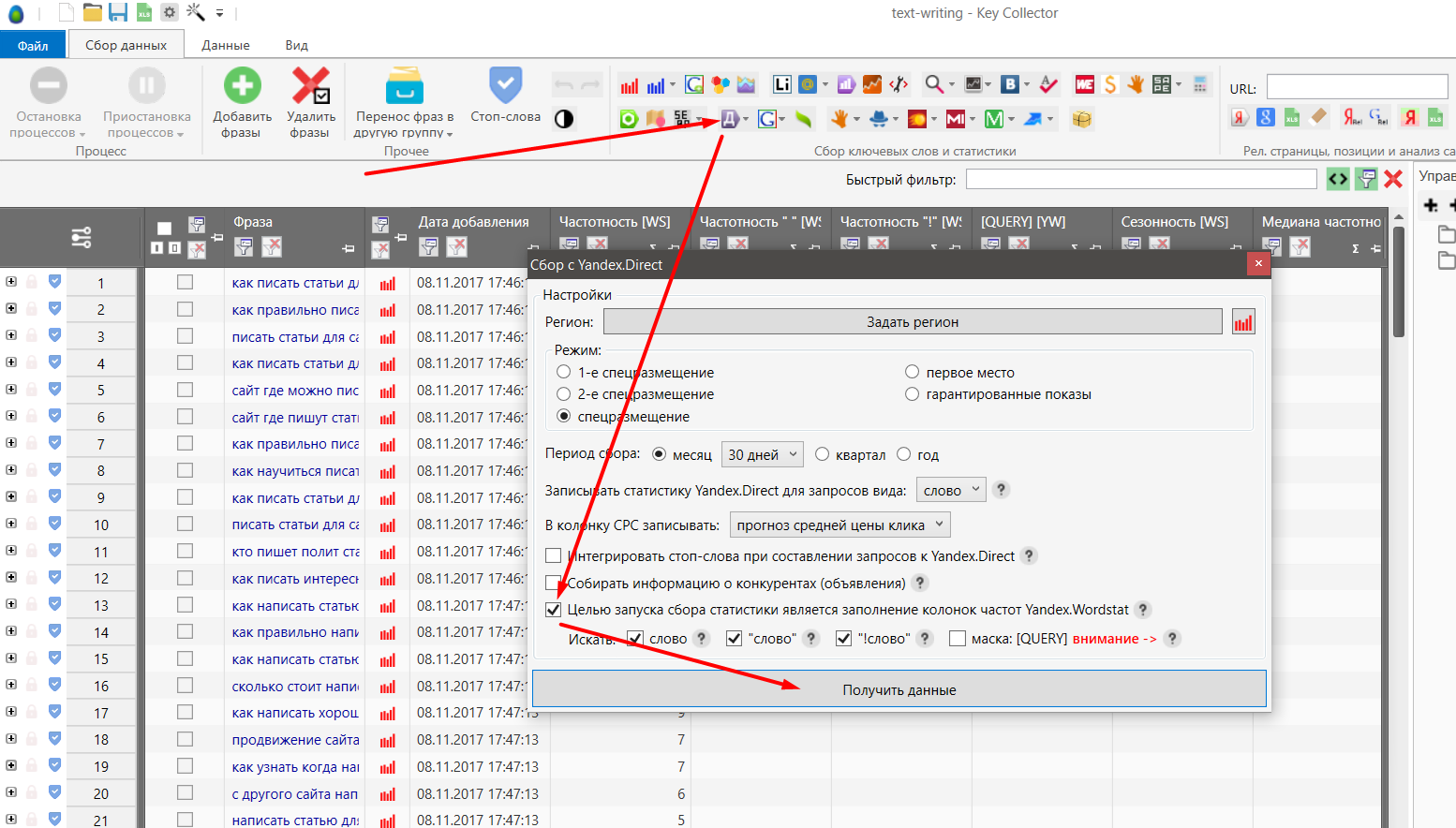 Чтобы начать использовать Key Collector, необходимо выполнить следующие шаги: