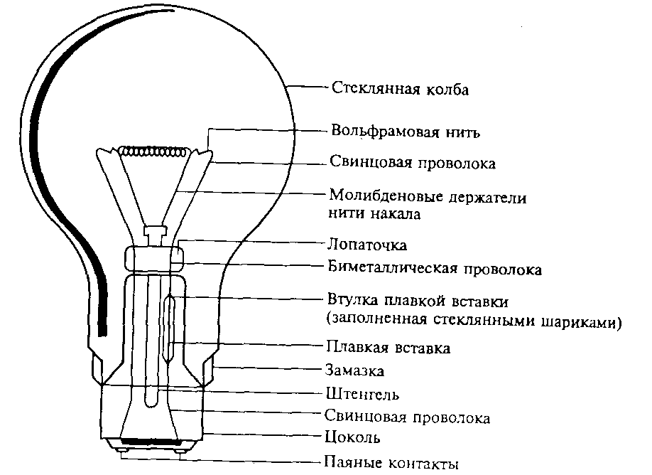 Автомобильные лампы накаливания состоят из следующих основных элементов: