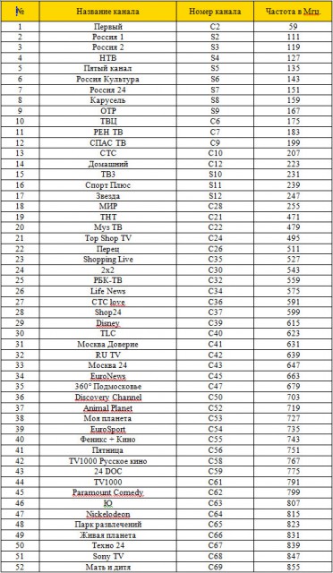 Чаще всего программное обеспечение телевизора находит все эфирные каналы автопоиском. Но иногда требуется ручная настройка, для которой необходимо знать точные частоты для вашего местоположения.