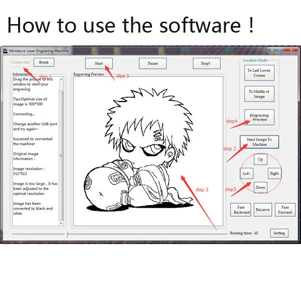 Карта Micro SD с образцами изображений с разрешением 512×512 пикселей. В дальнейшем для гравировки можно использовать свои изображения, рекомендуется преобразовать изображения в черно-белый цвет и настроить изображение размер до 500*500 пикселей.