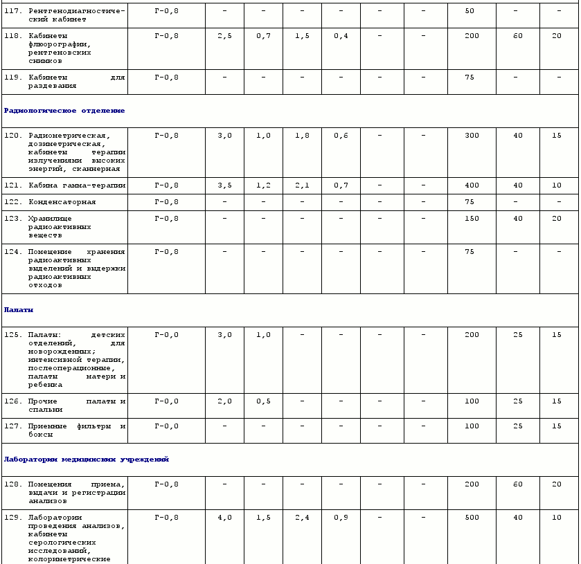 Для конкретных типов рабочих мест установлены следующие нормы: