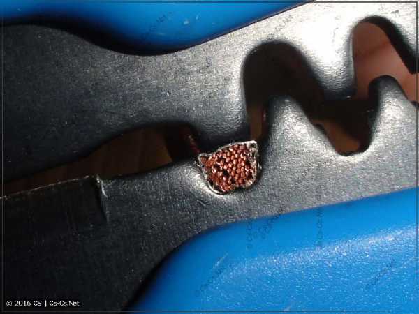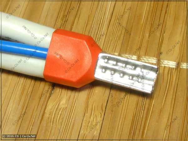После этого мне останется только вдвинуть до упора основной провод и опрессовать наконечник.