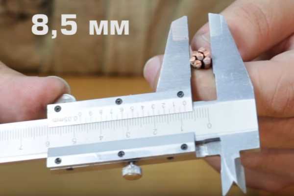 - ⚡замерить диаметр жилы обыкновенным штангенциркулем. После чего сравнить его с диаметром внутренней части хвостовика наконечника. Сделать это можно тем же штангенциркулем, либо по надписям на лопатке.