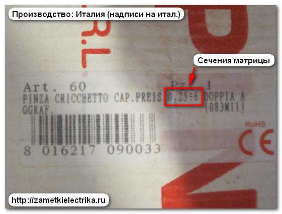 - Сечение провода — должно точно соответствовать указанному на наконечнике