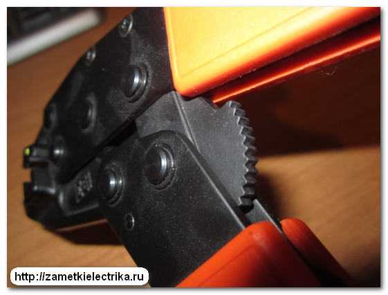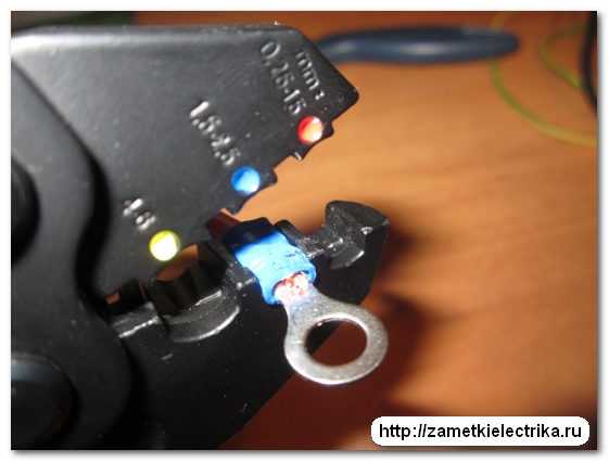 При обжиме со стороны лопатки — наконечник будет как бы налазить на жилу, все более уплотняя соединение. Изолированные наконечники имеют даже специальную цифровую маркировку подсказывающую порядок прессования.