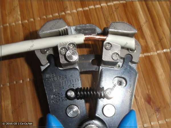 Срез изоляции старайтесь делать ровным, строго под углом 90 градусов к оси самого кабеля.