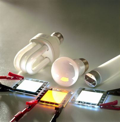 Потенциал энергосбережения органических светодиодов такой же, как у светодиодов, но эти две технологии во многом различаются. Во-первых, в то время как светодиоды являются концентрированными источниками яркого света, OLED могут быть сконфигурированы как более крупные и рассеянные источники света, чей мягкий свет можно наблюдать напрямую, что устраняет необходимость в шторах, рассеивателях, линзах, жалюзи или параболических оболочках.