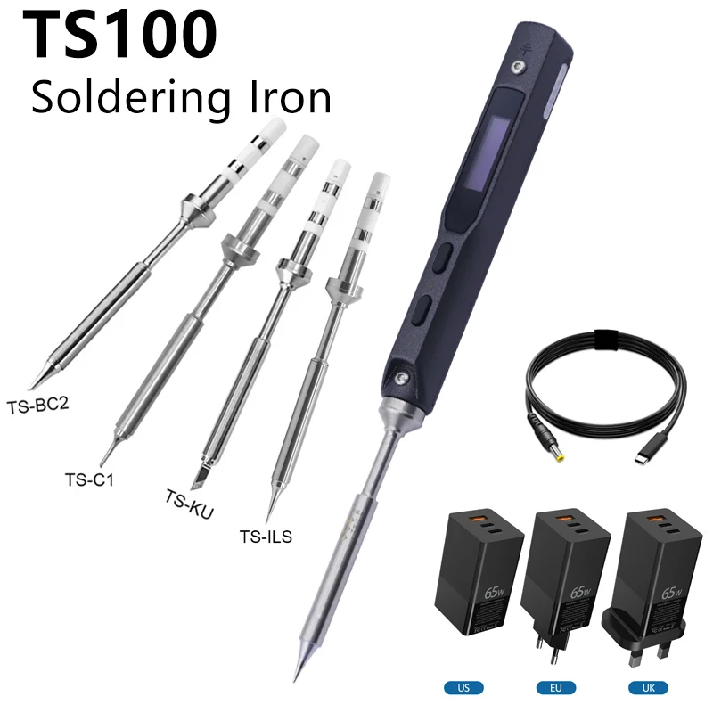 - 1 паяльник TS100 Gold с цифровым ЖК-дисплеем