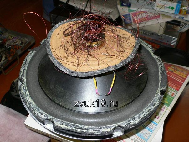 При эффективной работе акустических систем на максимальных уровнях громкости редко бывает, когда звуковая система перегорает аккуратно и в одном месте. Обычно после разборки громкоговорителя видно чёрные и обугленные витки.