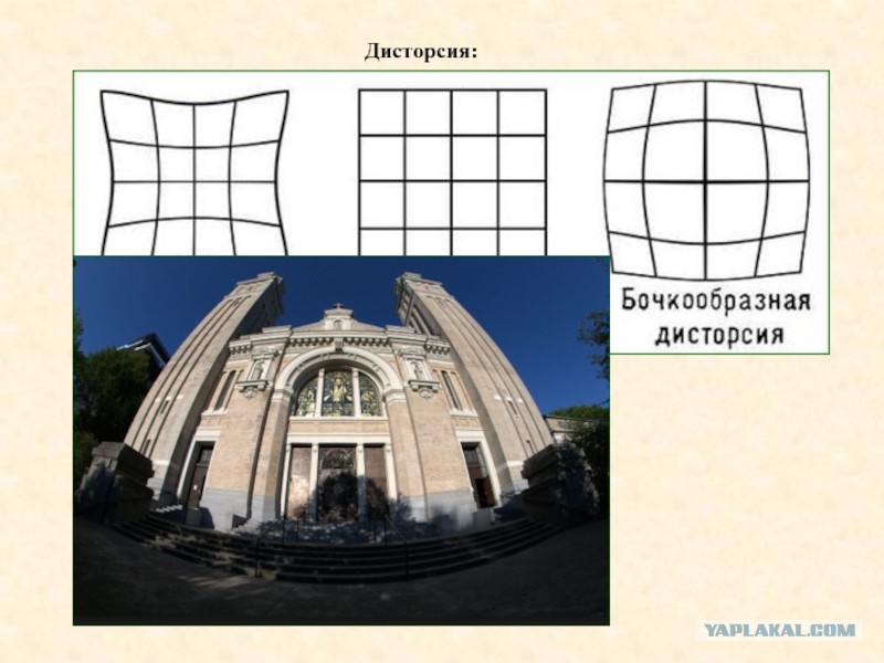 - Бочкообразная дисторсия — Фотография выглядит вытянутой в центре. Чтобы коррекция искажений работала правильно, ось объектива камеры должна совпадать с центром изображения.