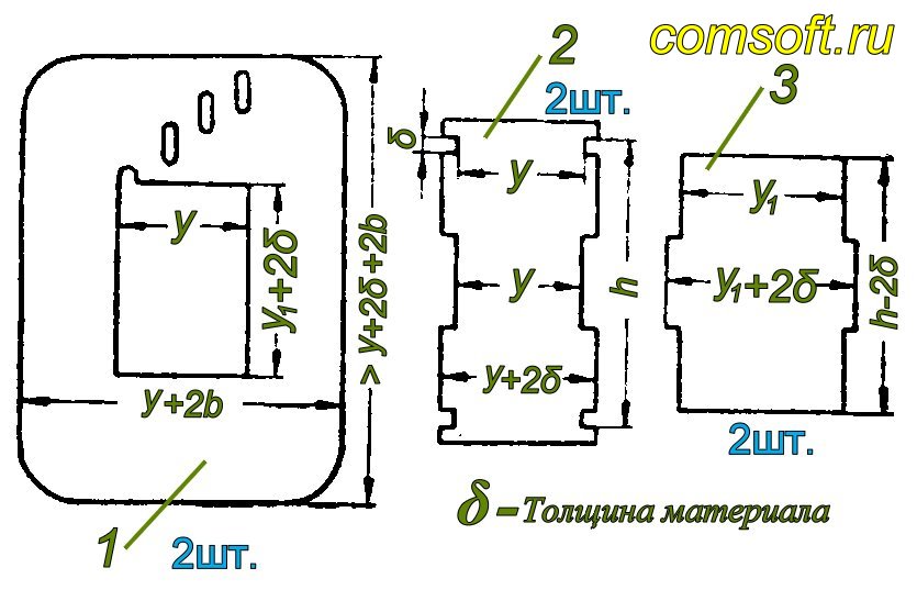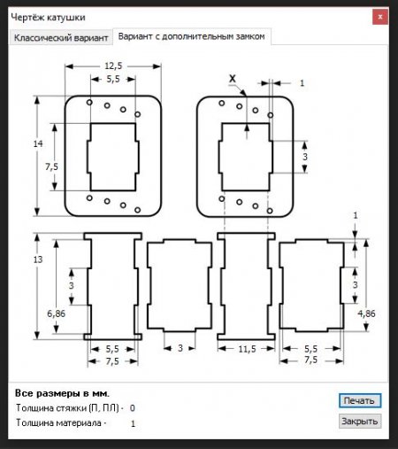 Проведение разметки по образцам позволяет избежать появления неплотных и неровных поверхностей в обмотке. Тонкий гетинакс используется, если требуется увеличить жесткость каркаса. Например, если мощность устройства составляет до 10 Вт, то размеры деталей маленьких будут составлять 0,5, средних — 0,7 до 1,5, а больших — от 1.