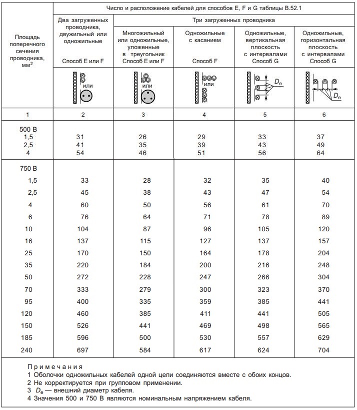 Способ монтажа кабеля также влияет на выбор сечения. Различают следующие основные варианты: