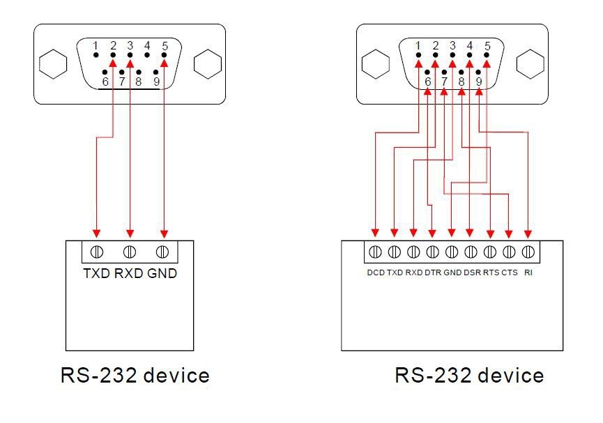 Для простого соединения достаточно использовать линии TxD, RxD и GND. Остальные применяются для управления потоком данных.