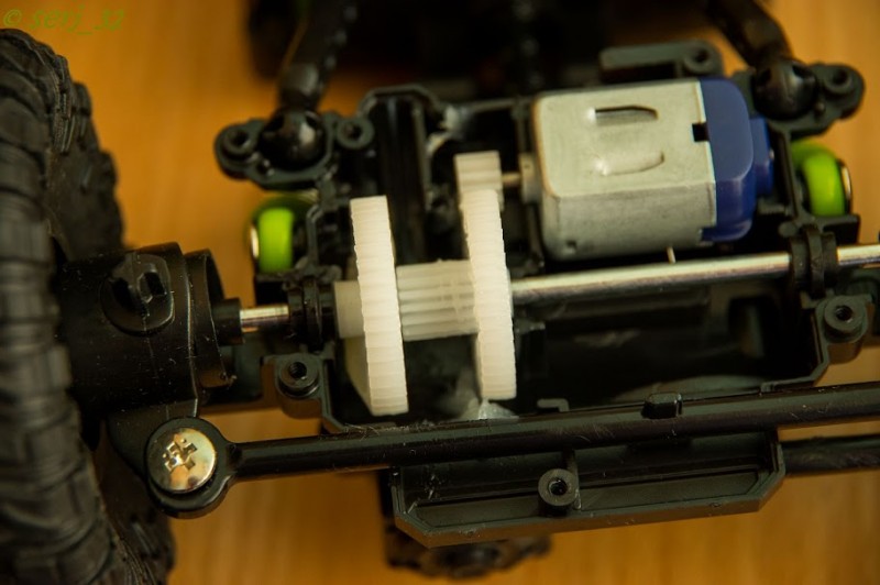 В таком состоянии машинка была испытана: к рулевому претензий не было — пропорциональное управление действовало, к управлению ходовым двигателем, собственно, тоже — газу, и она поехала, переключил тумблер — и вот она уже в другую сторону едет.