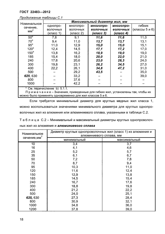Основной документ, регламентирующий параметры токопроводящих жил — ГОСТ 22483-77 «Жилы токопроводящие медные и алюминиевые для кабелей, проводов и шнуров».