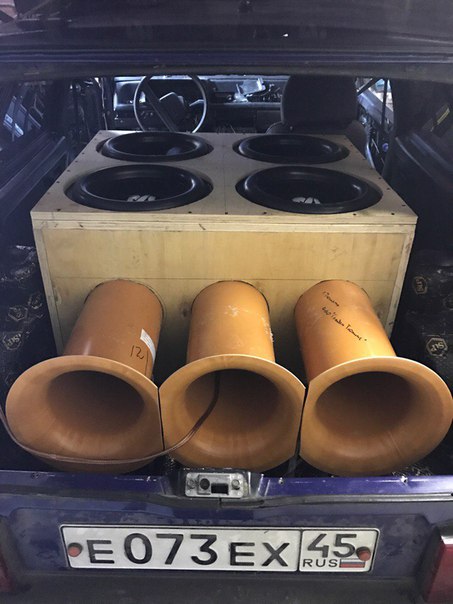 Сложная конструкция с несколькими камерами. Позволяет получить очень высокую отдачу в узкой полосе частот. Используется в основном в автозвуке.