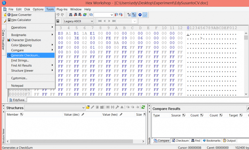 Вы можете написать своё собственное определение структуры файла, используя внутренний язык, подобный C/C++, почти для любого двоичного документа. Например, если вы хотите редактировать файлы данных, вам нужно сначала описать файловую структуру, а затем привязать её к конкретному файлу, используя специальное окно редактора. - Анализатор структуры файла делает двоичную корректировку намного проще, чем просто редактирование необработанных шестнадцатеричных байтов. Открывайте, просматривайте и редактируйте файлы hex/bin с небывалой лёгкостью!