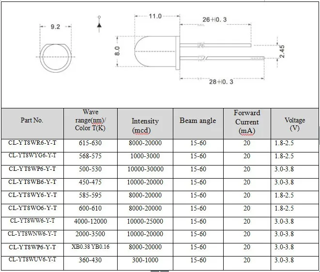 | Типы светодиодов | |||||||
