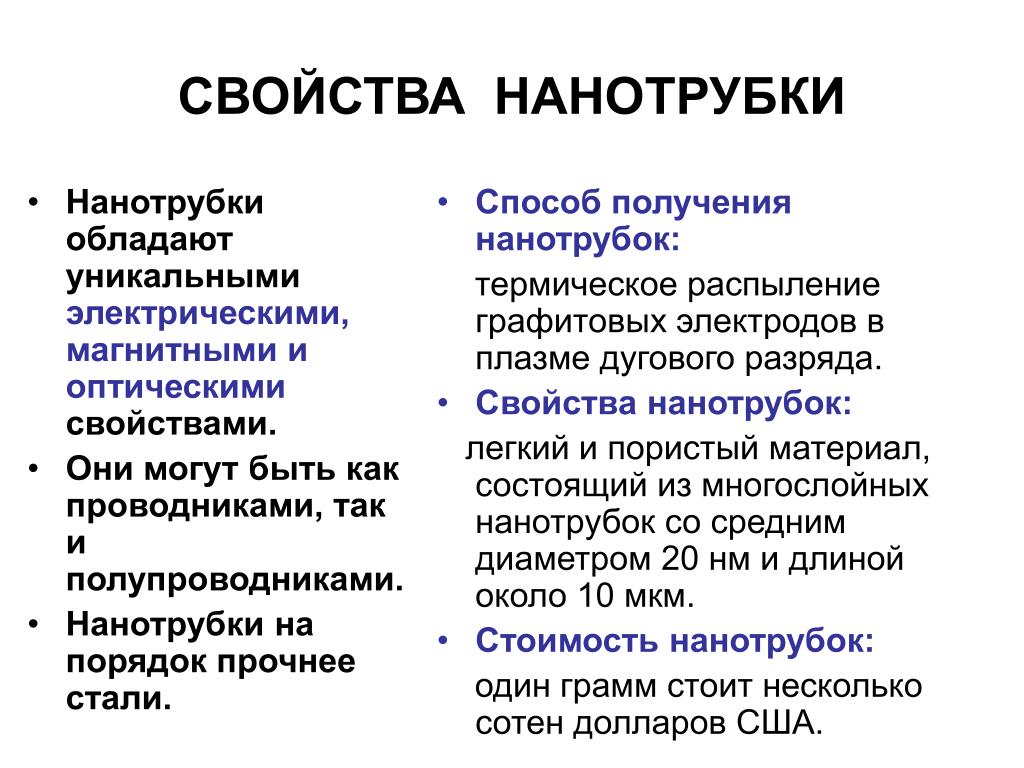 Какие свойства фуллеренов и нанотрубок – краткое изложение