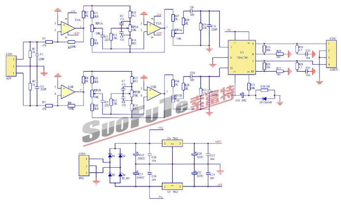 Для подавления радиочастотных помех добавлены входные пассивные ФНЧ R3, C3 и R4, C4.