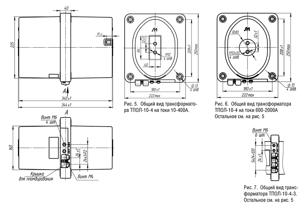 Трансформаторы комплектуются защитными прозрачными крышками для раздельного пломбирования вторичных выводов (образец пломбирования).