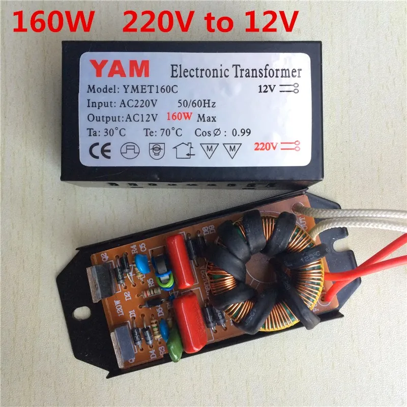 - Светодиодный преобразователь питания с галогенными лампами Электронный трансформаторный адаптер 110 В 160 Вт оценивается покупателями и стоит примерно около 9,52 долларов США.