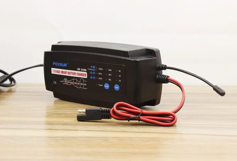 Автоматическое зарядное устройство для аккумулятора авто Foxsur 12/24-8а, 8А 12В/24В 4А, умная зарядка