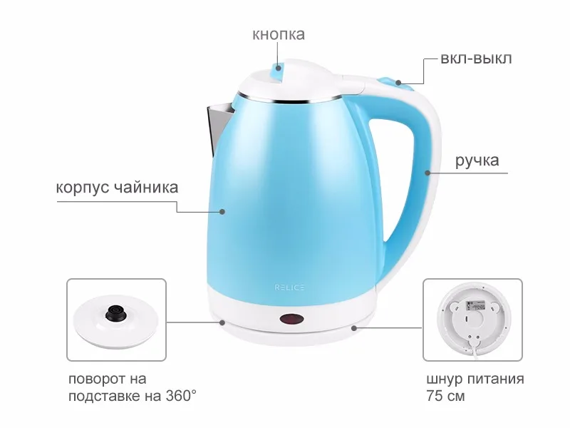 Такая конструкция обеспечивает безопасность и удобство использования электрочайника.