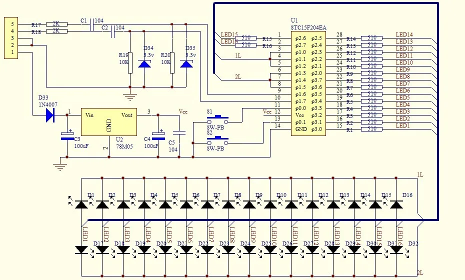 1. Не понятно, зачем тут разъем-перемычка J3? В комплекте конструктора нет ни разъема, ни перемычки. При включении как-то непонятно работают только половина светодиодов (красные и ниже). Запаял (закоротил) контакты J3