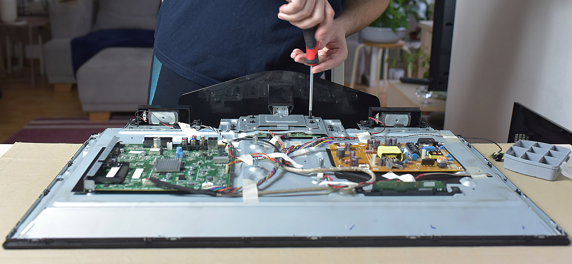 - Отключите телевизор от сети и разберите корпус, соблюдая меры предосторожности.