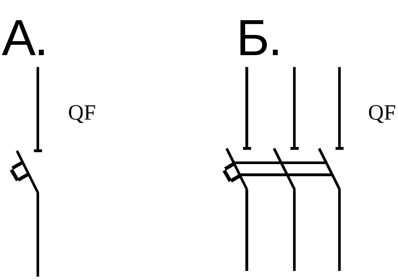 Согласно ему автоматы на схемах обозначаются символами – QF:
