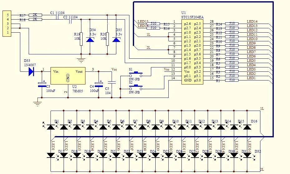 Основные компоненты типичного индикатора напряжения на светодиодах: