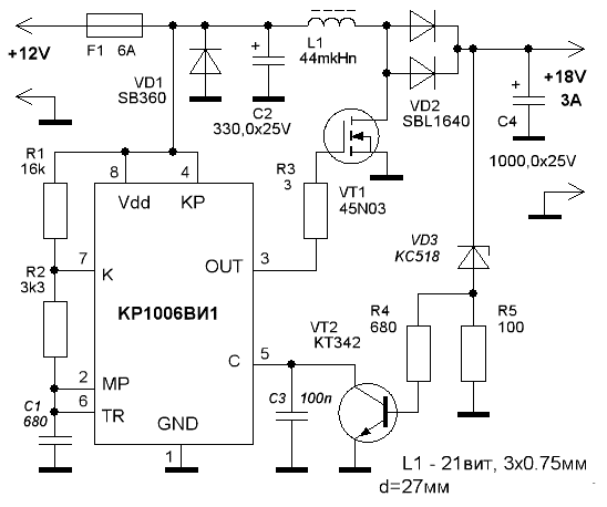 - SEPIC — выходное напряжение может быть как выше, так и ниже входного