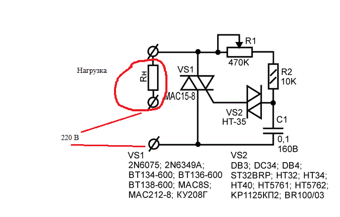 Существует несколько базовых схем симисторных регуляторов мощности: