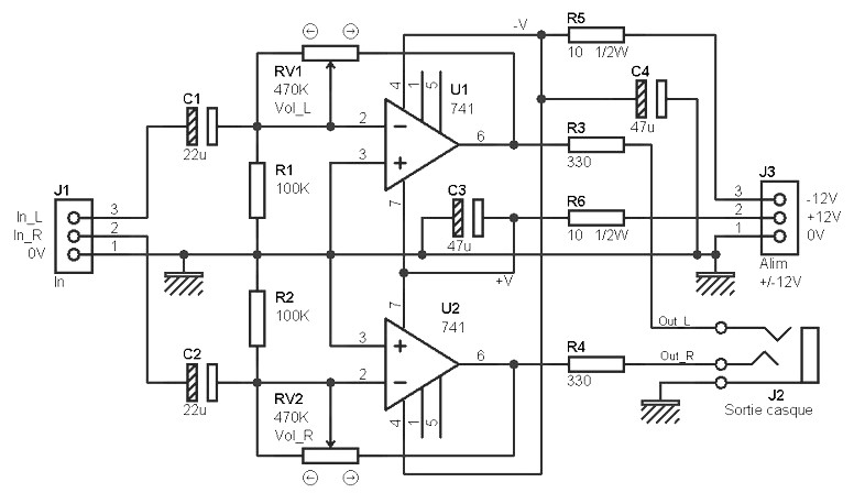 Схема предусилителя звука с операционным усилителем может использовать различные двойные операционные усилители, такие как TL072, NE5532, OPA2134, CA1458, RC4588, LM358, LM4558, NJM4560, LM258. Схема с использованием небольшого количества компонентов и простой сборкой, включает в себя одностороннюю и двустороннюю плату.