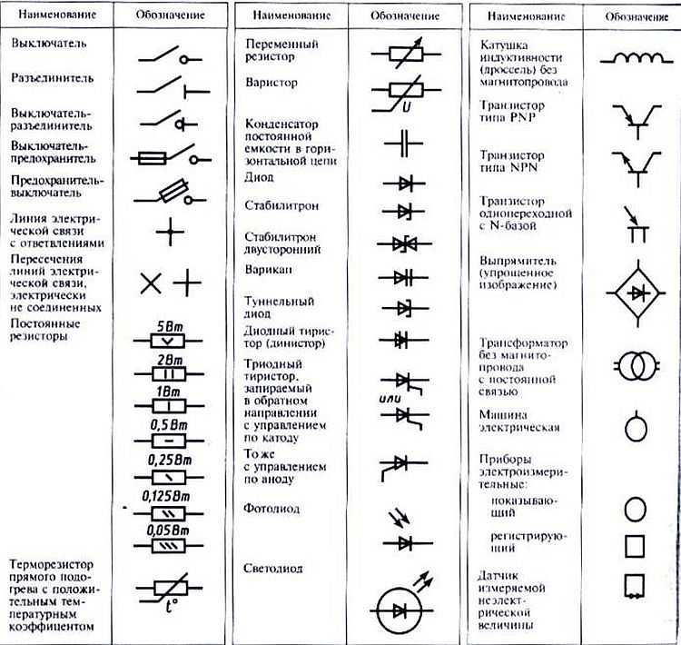 Изучение ГОСТов дело полезное, но требующее времени, которое не у всех есть в достаточном количестве. Потому в статье приведем условные обозначения в электрических схемах — основную элементную базу для создания чертежей и схем электропроводки, принципиальных схем устройств.