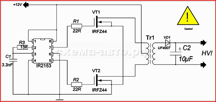 Схема простого преобразователя 12В в 220В
