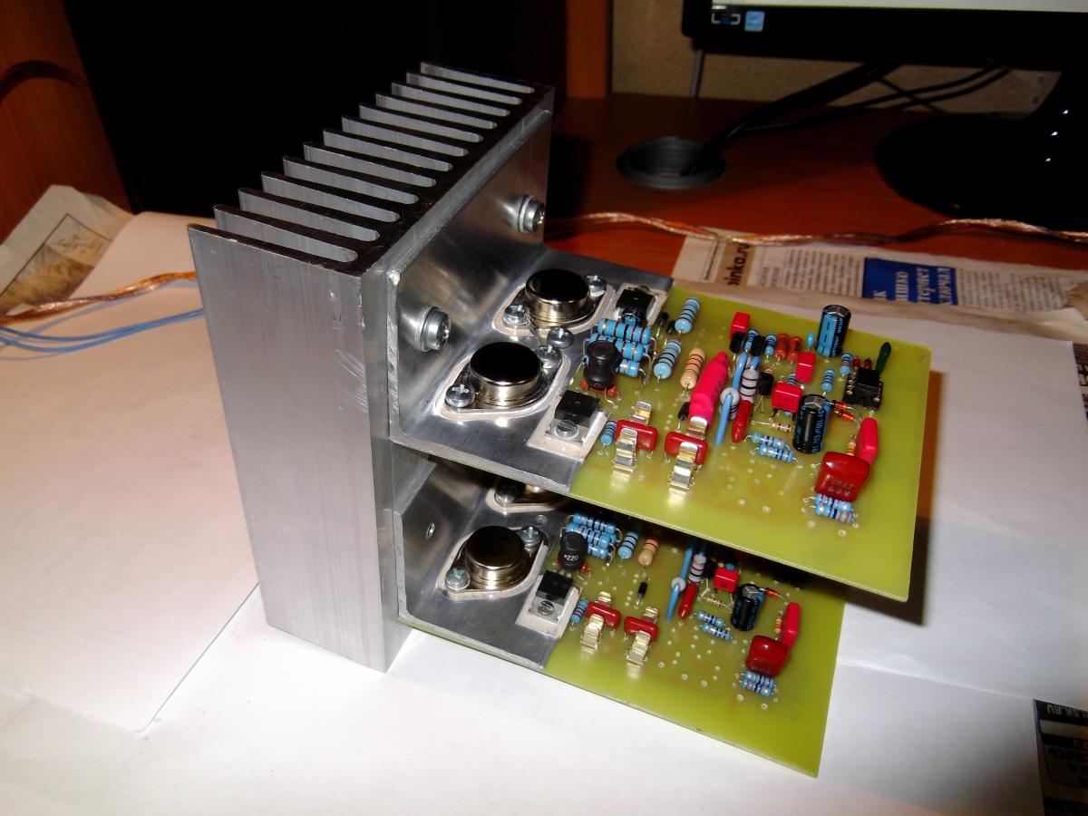 Все готово к первому включению. Большие транзисторы на слюде, драйверные просто так, у них спина пластиковая.